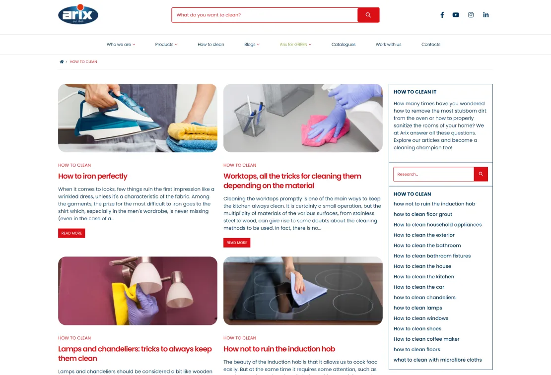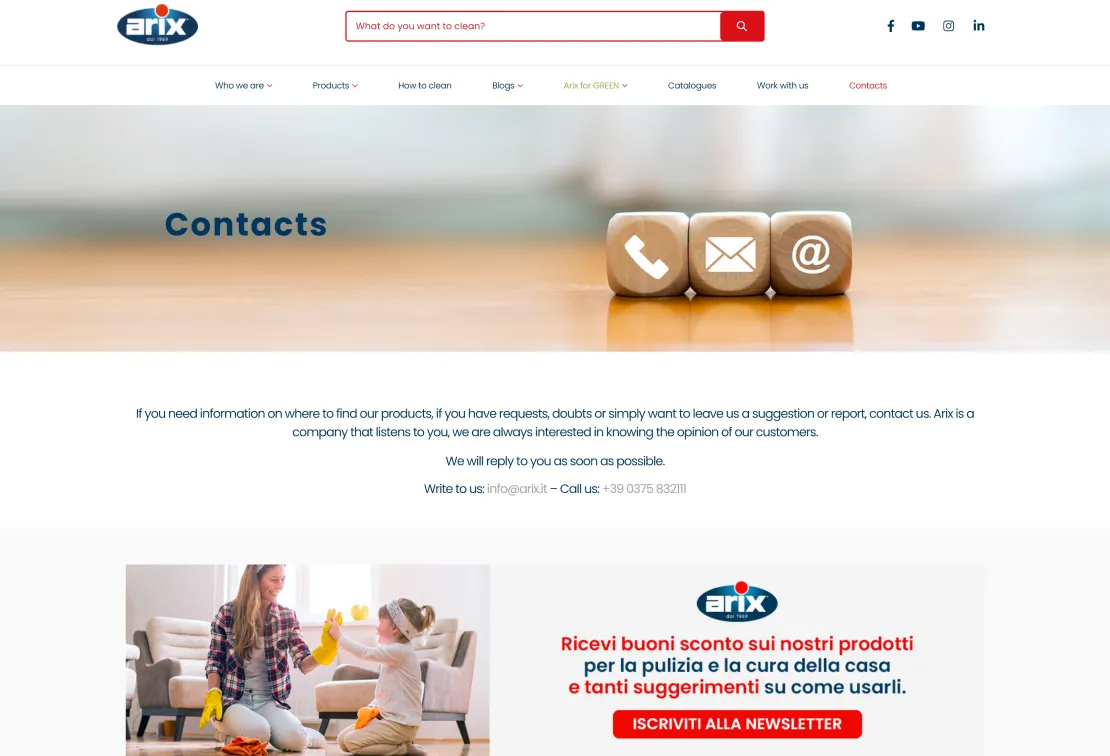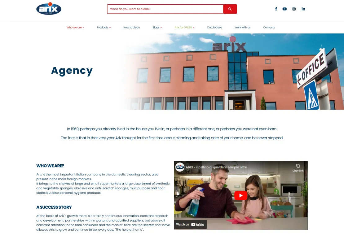 Industry: Ecommerce Industries Service: Web DevelopmentArix is a prominent Italian company specializing in the domestic cleaning sector. They offer a wide range of cleaning products, including sponges, cloths, and personal hygiene items, and have a strong presence in both domestic and international markets.